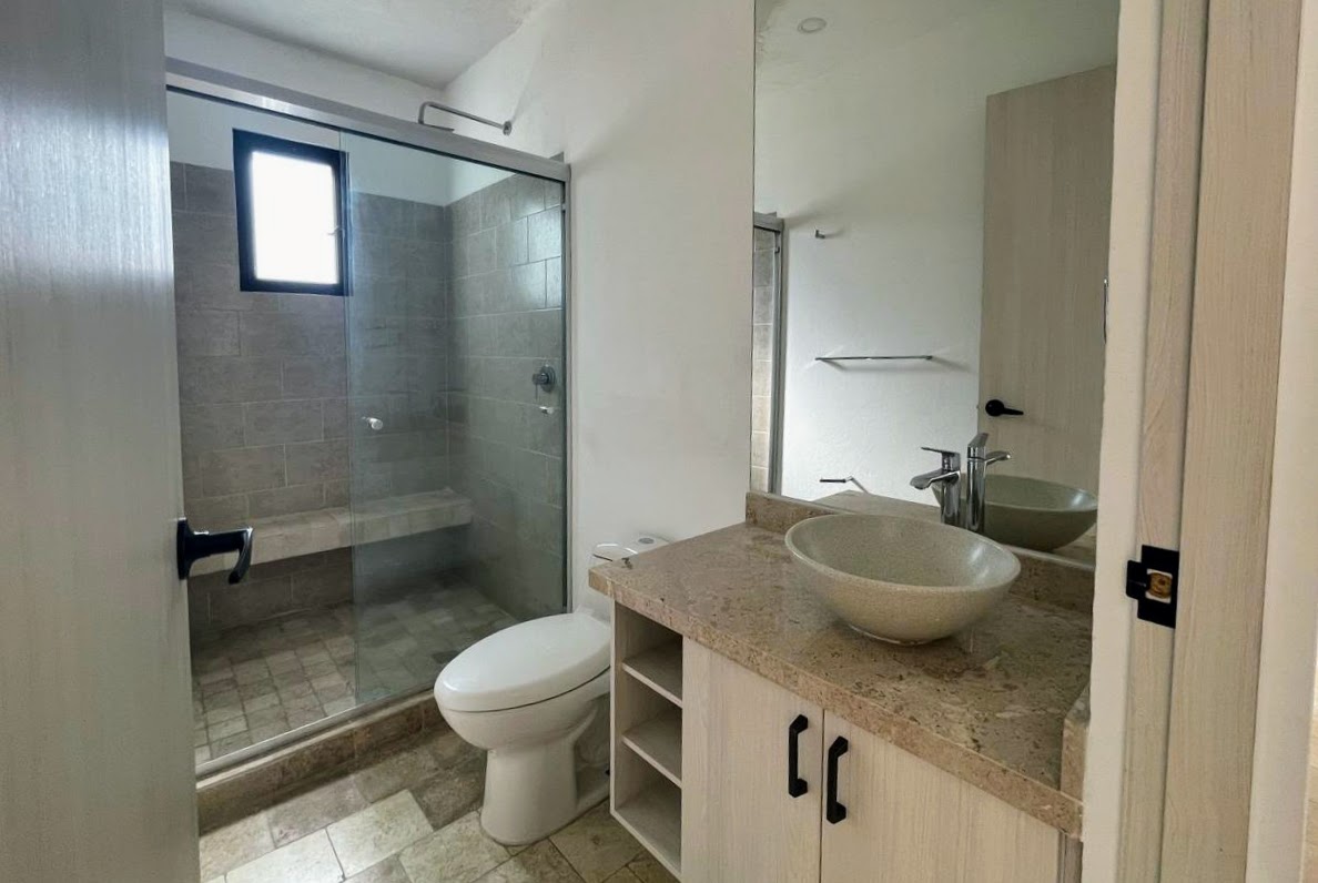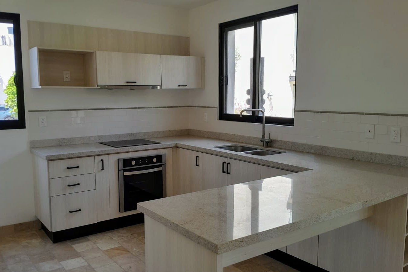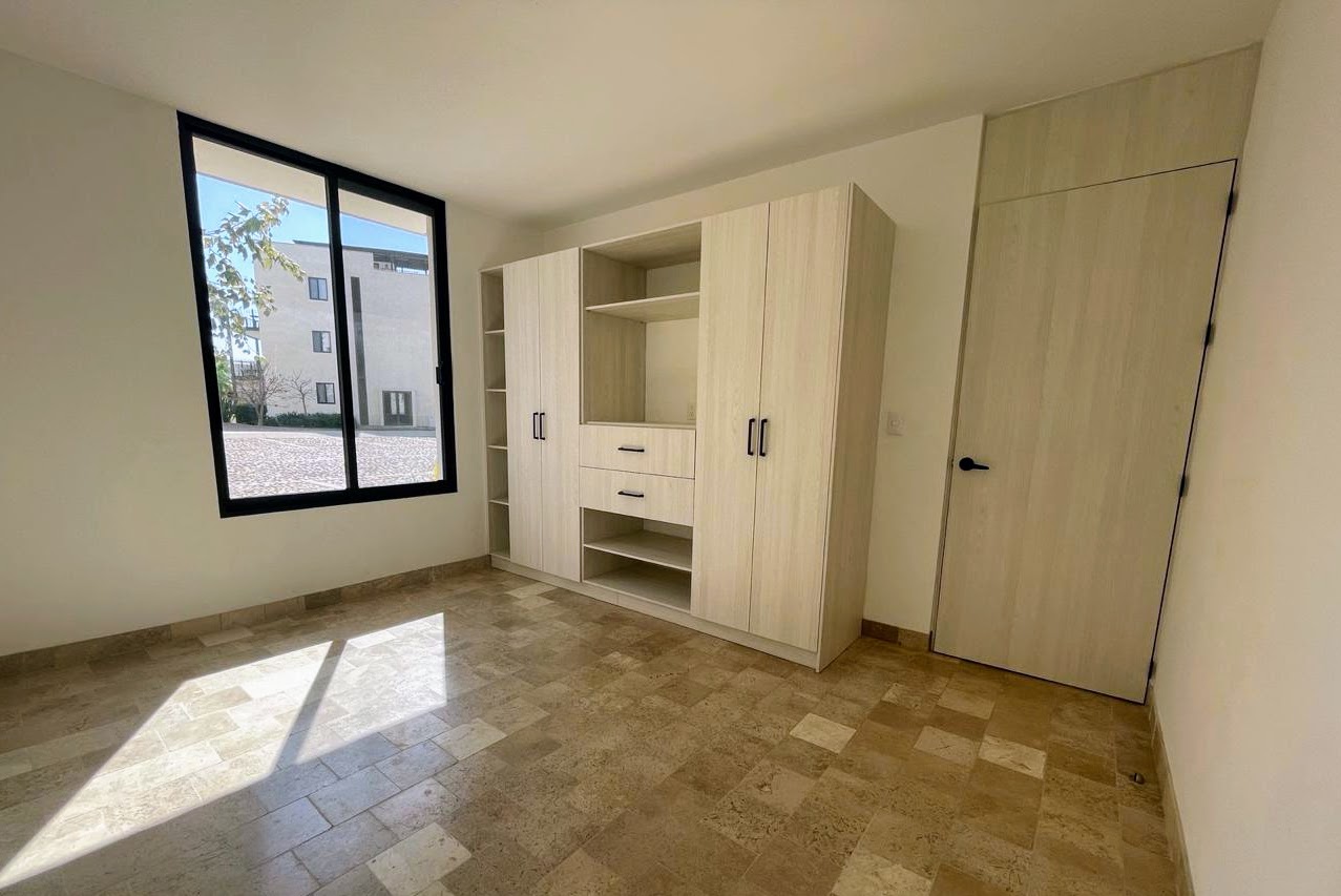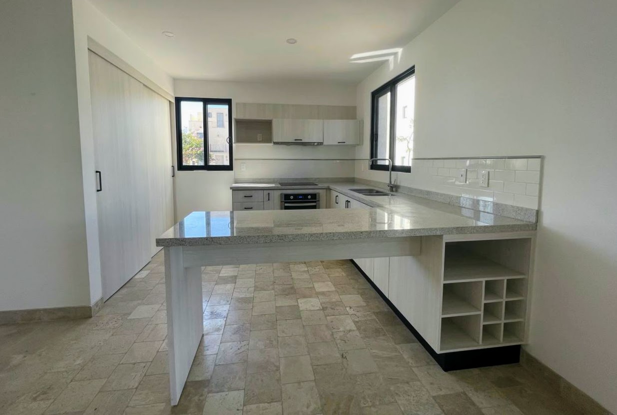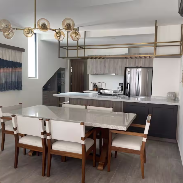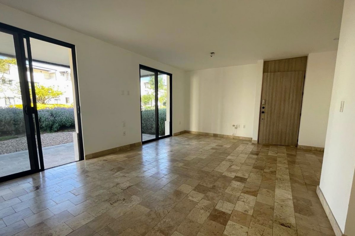 Inside Residencial La Luminaria, the property includes 2 bedrooms, 2 full bathrooms, a fully equipped kitchen, dining area, and spacious living room, along with a private back patio ideal for relaxation or outdoor dining.