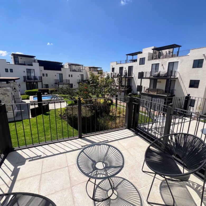 Casa Magnolias 8 is a thoughtfully designed artist’s residence located inside the prestigious Zirándaro Golf Club—an exclusive, master-planned community offering 24/7 security, modern amenities, and vast green spaces. Situated within the Magnolias private enclave, this home blends style and comfort with a contemporary layout and tasteful interior design. The two-story property offers 3 spacious bedrooms, 3.5 bathrooms, and a generous 247 m² of construction on a 220.46 m² lot. The private patio extends into the beautifully landscaped green area shared with the community, and residents enjoy access to the pool and common areas. A large terrace with sweeping mountain and golf course views offers the perfect retreat, while the optional furniture package makes moving in effortless. This is the ideal home for those seeking peace, creativity, and a secure lifestyle in San Miguel de Allende.